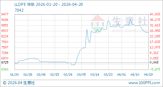 4月20日生意社LLDPE基准价为8466.67元/吨