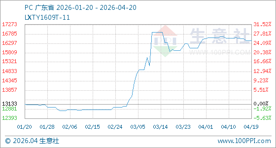 4月20日生意社PC基准价为16433.33元/吨