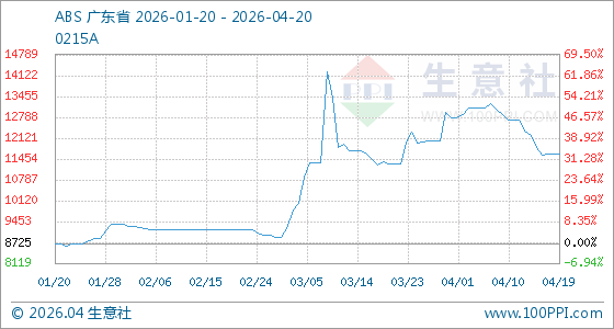 4月20日,生意社ABS基准价为11600.00元/吨,与本月初(12766.67元/吨)相比,下降了9.14%。