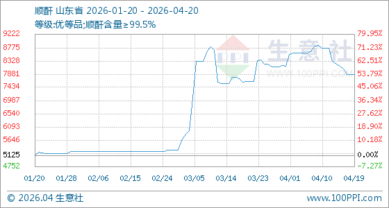 4月20日生意社顺酐基准价为7862.50元/吨