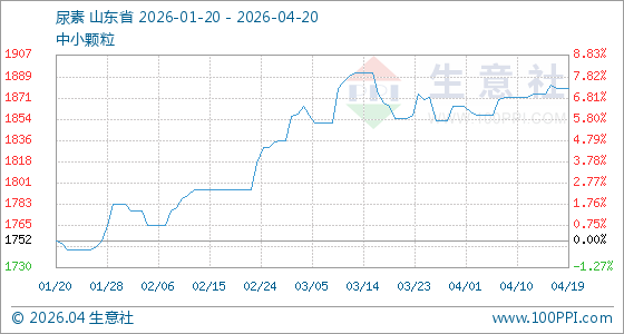 4月20日,生意社尿素基准价为1880.00元/吨,与本月初(1865.00元/吨)相比,上涨了0.80%。