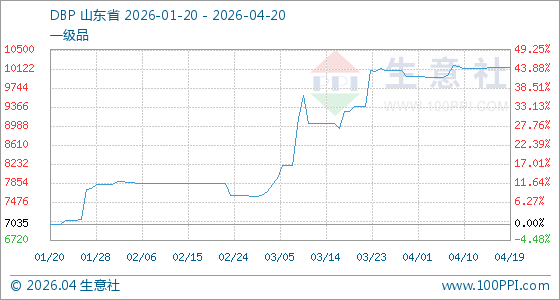 4月20日,生意社DBP基准价为10150.00元/吨,与本月初(9968.33元/吨)相比,上涨了1.82%。