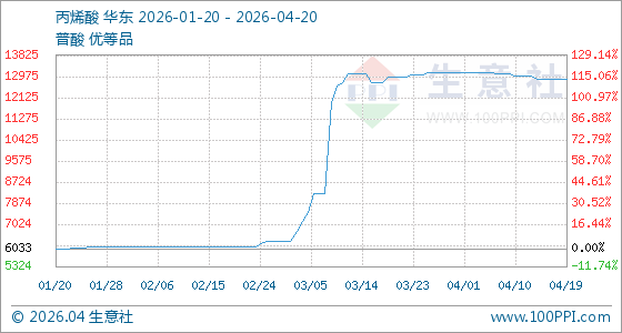 4月20日生意社丙烯酸基准价为12883.33元/吨