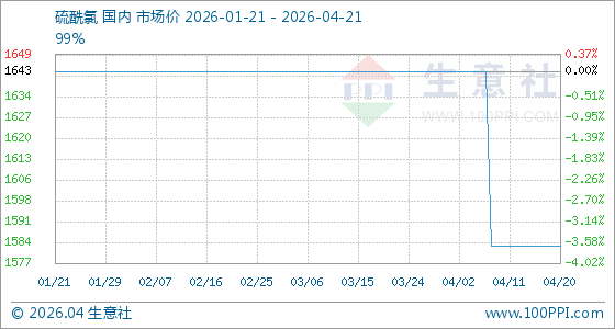 4月21日生意社硫酰氯基准价为1583.33元/吨