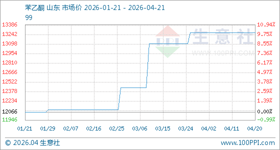 4月21日生意社苯乙酮基准价为13266.67元/吨