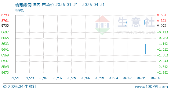 4月21日,生意社硫氰酸钠基准价为8500.00元/吨,与本月初(8733.33元/吨)相比,下降了2.67%。