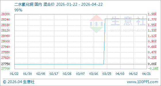 4月22日生意社二水氯化铜基准价为28250.00元/吨
