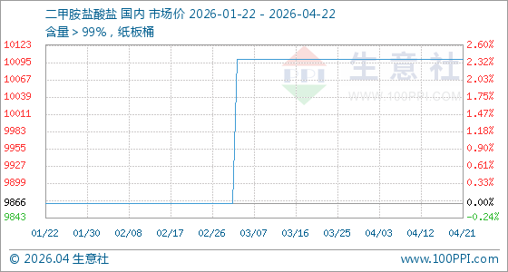 4月22日生意社二甲胺盐酸盐基准价为10100.00元/吨