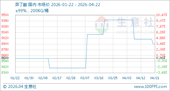 4月22日生意社异丁酸基准价为8900.00元/吨
