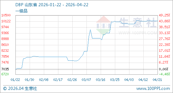 4月22日,生意社DBP基准价为10150.00元/吨,与本月初(9968.33元/吨)相比,上涨了1.82%。