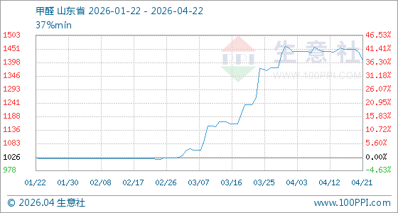 4月22日生意社甲醛基准价为1405.00元/吨