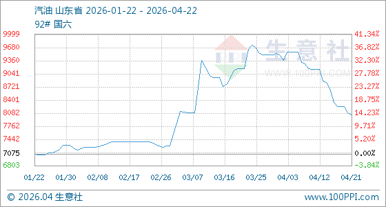 4月22日,生意社汽油基准价为8041.71元/吨,与本月初(9532.00元/吨)相比,下降了15.63%。