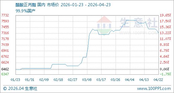 4月23日生意社醋酸正丙酯基准价为7316.67元/吨