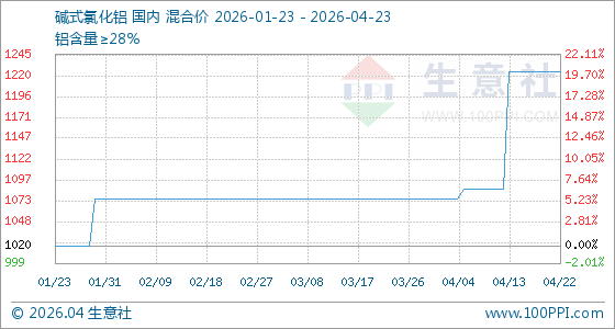4月23日生意社碱式氯化铝基准价为1225.00元/吨