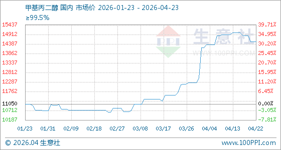 4月23日生意社甲基丙二醇基准价为14500.00元/吨