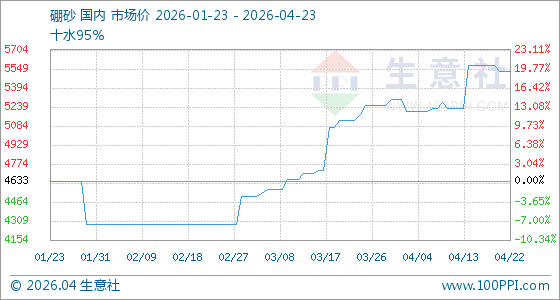 4月23日生意社硼砂基准价为5525.00元/吨