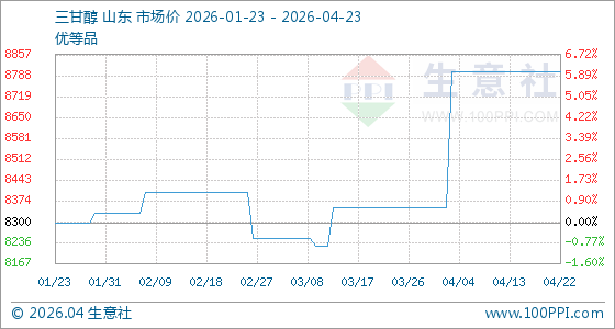 4月23日生意社三甘醇基准价为8800.00元/吨