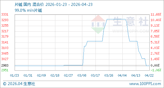 4月23日生意社片碱基准价为2983.33元/吨