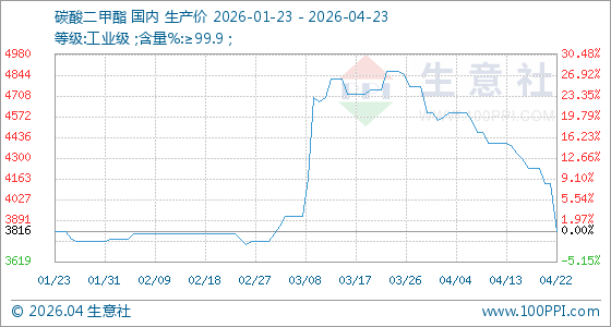 4月23日生意社碳酸二甲酯基准价为3816.67元/吨