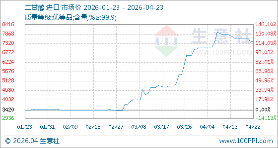 4月23日生意社二甘醇基准价为7453.33元/吨