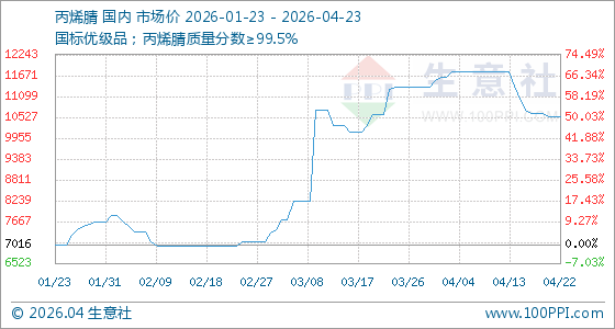 4月23日生意社丙烯腈基准价为10533.33元/吨