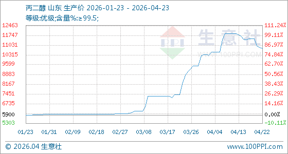 4月23日生意社丙二醇基准价为10800.00元/吨