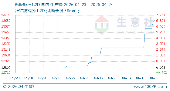 4月23日生意社粘胶短纤1.2D基准价为13700.00元/吨