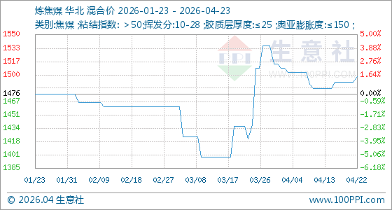 4月23日生意社炼焦煤基准价为1498.75元/吨