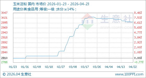 4月23日生意社玉米淀粉基准价为3000.00元/吨