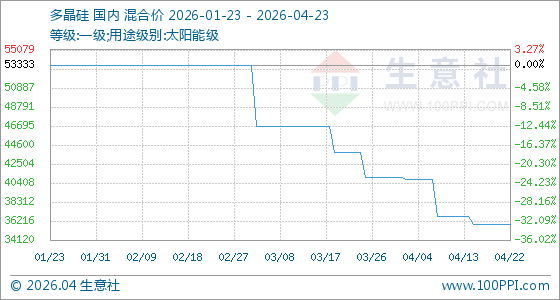 4月23日生意社多晶硅基准价为35866.67元/吨