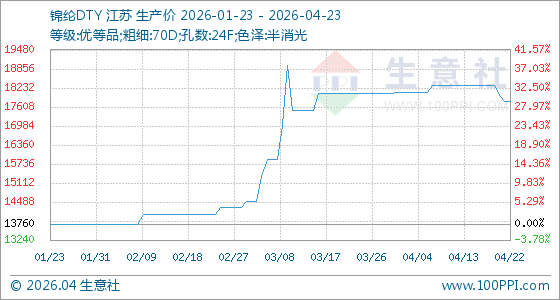4月23日生意社锦纶DTY基准价为17780.00元/吨