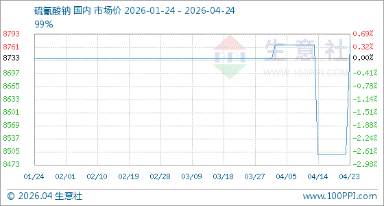 4月24日生意社硫氰酸钠基准价为8766.67元/吨