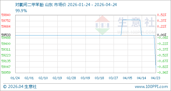 4月24日生意社对氯间二甲苯酚基准价为59033.33元/吨