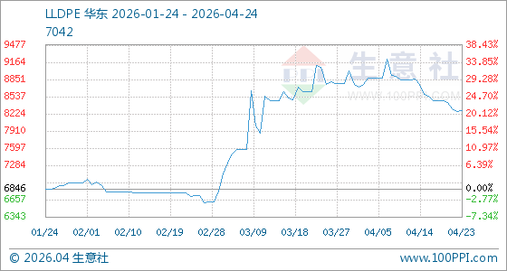 4月24日生意社LLDPE基准价为8275.00元/吨