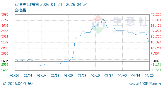 4月24日,生意社石油焦基准价为3161.00元/吨,与本月初(3541.00元/吨)相比,下降了10.73%。