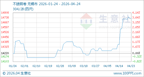 4月24日生意社不锈钢卷基准价为14725.00元/吨