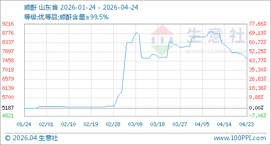 4月24日生意社顺酐基准价为7550.00元/吨