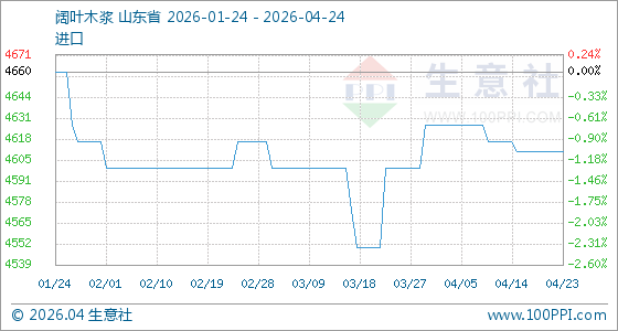 4月24日生意社阔叶木浆基准价为4610.00元/吨