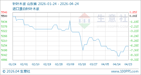 4月24日生意社针叶木浆基准价为5150.00元/吨