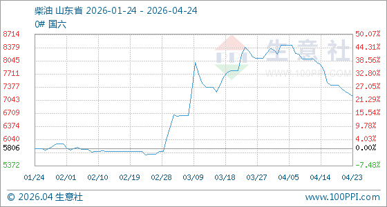 4月24日,生意社柴油基准价为7139.14元/吨,与本月初(8352.71元/吨)相比,下降了14.53%。