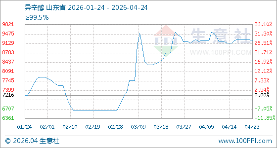 4月24日生意社异辛醇基准价为9233.33元/吨