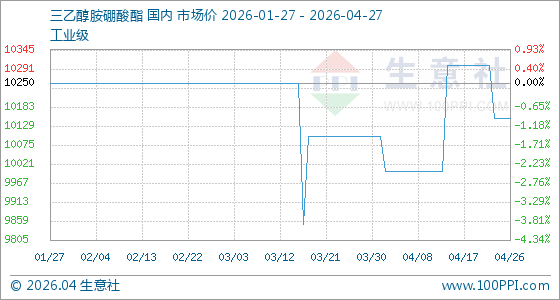 4月27日生意社三乙醇胺硼酸酯基准价为10150.00元/吨
