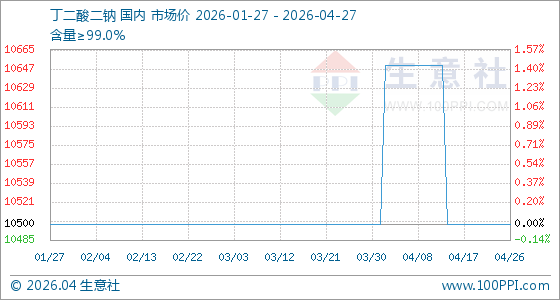 4月27日生意社丁二酸二钠基准价为10500.00元/吨