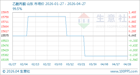4月27日生意社乙酰丙酮基准价为15375.00元/吨