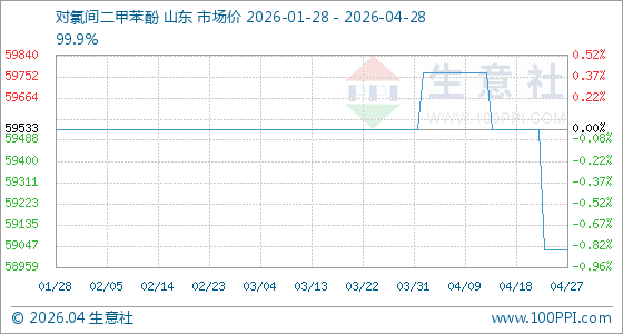 4月28日生意社对氯间二甲苯酚基准价为59033.33元/吨