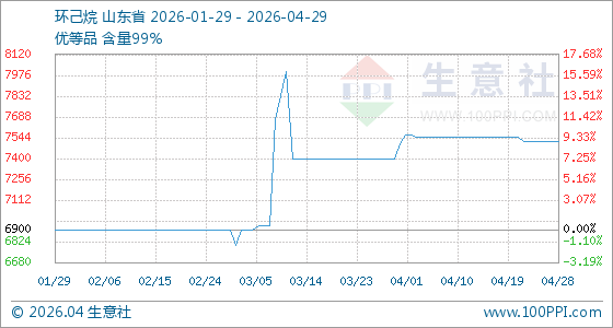 4月29日生意社环己烷基准价为7516.67元/吨