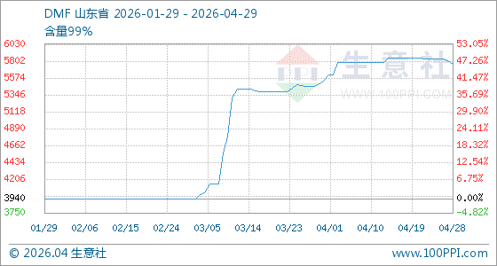 4月29日,生意社DMF基准价为5760.00元/吨,与本月初(5540.00元/吨)相比,上涨了3.97%。