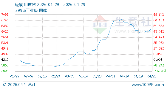 4月29日生意社硫磺基准价为6216.67元/吨